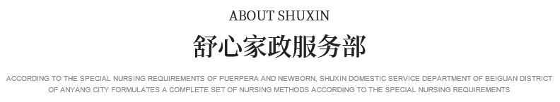關于我們 產婦服務 新生兒護理 育嬰服務 月嫂培訓 催乳師培訓 舒心家政 月子餐 資質榮譽 服務案例